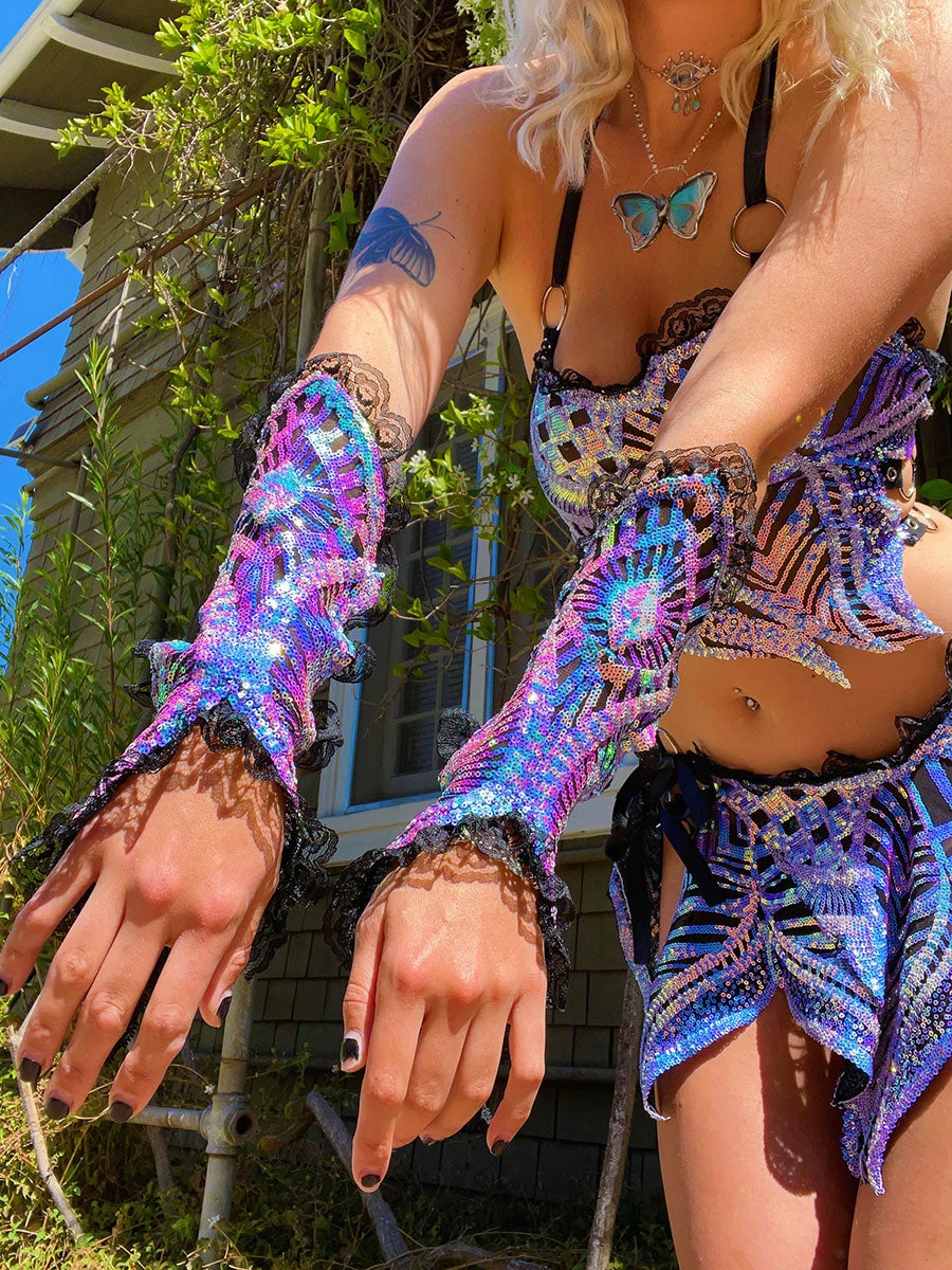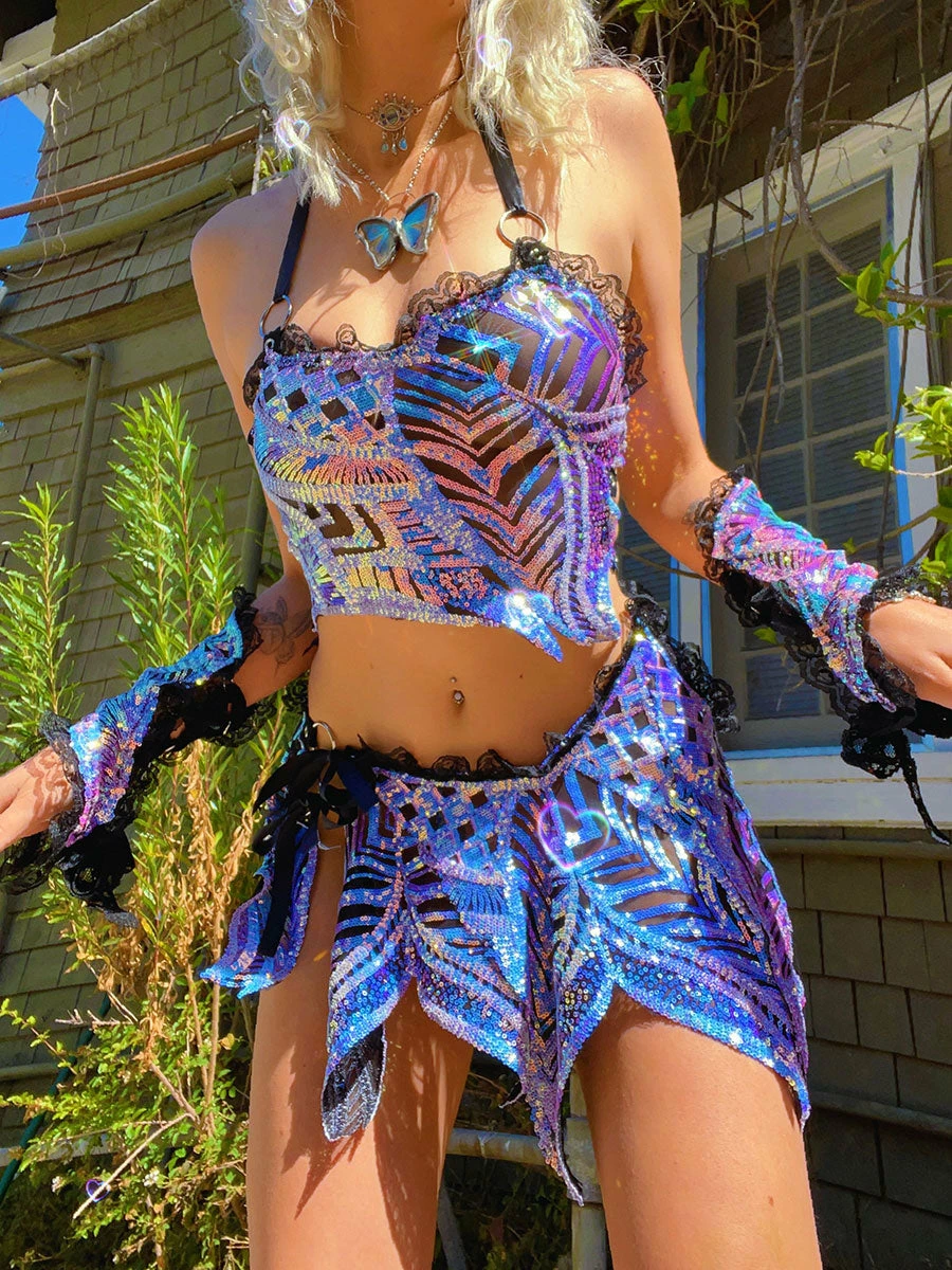 Icy asymmetrical fairy set with top, flowy skirt & fairy cuffs.