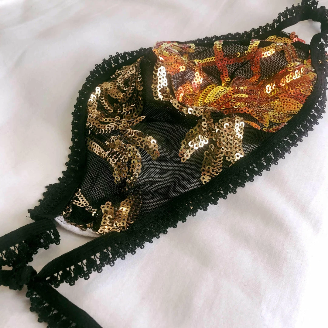 Adjustable black elastic lace that go around your ear | Lined with 100% cotton fabricÂ