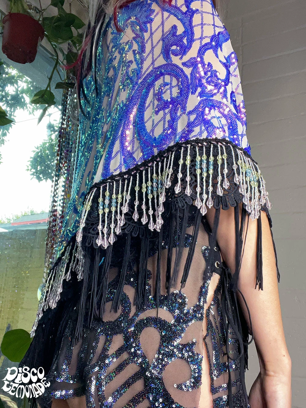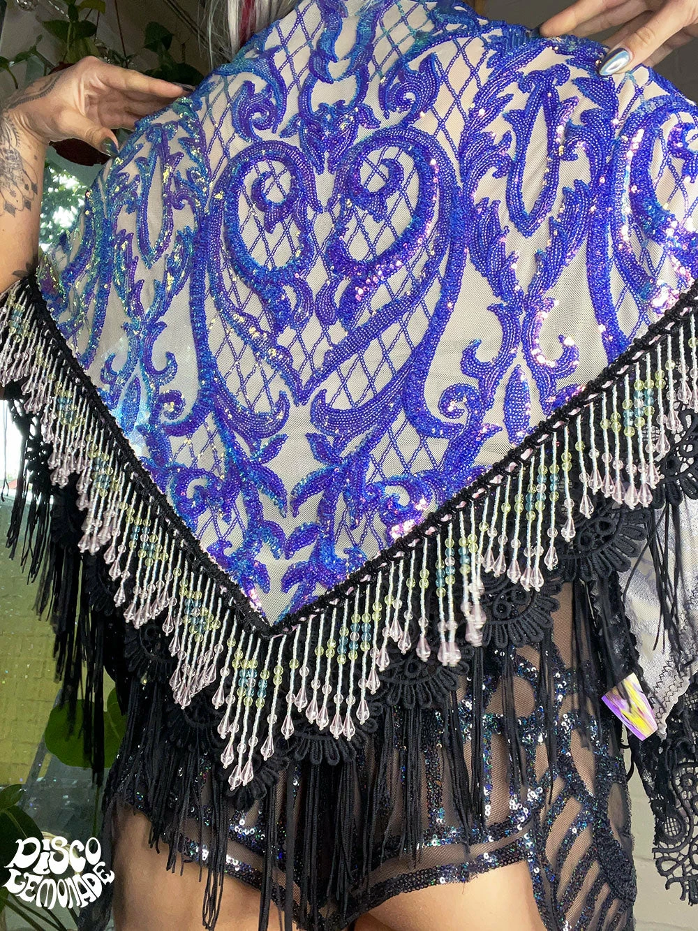 All Goddess Shawls are hand-made, sewn to order. Each shawl varies slightly in size, color & trim ~ it is my goal to make every piece unique & special to each customer ~ If you have any requests please feel free to email me once the order is placed 🙂