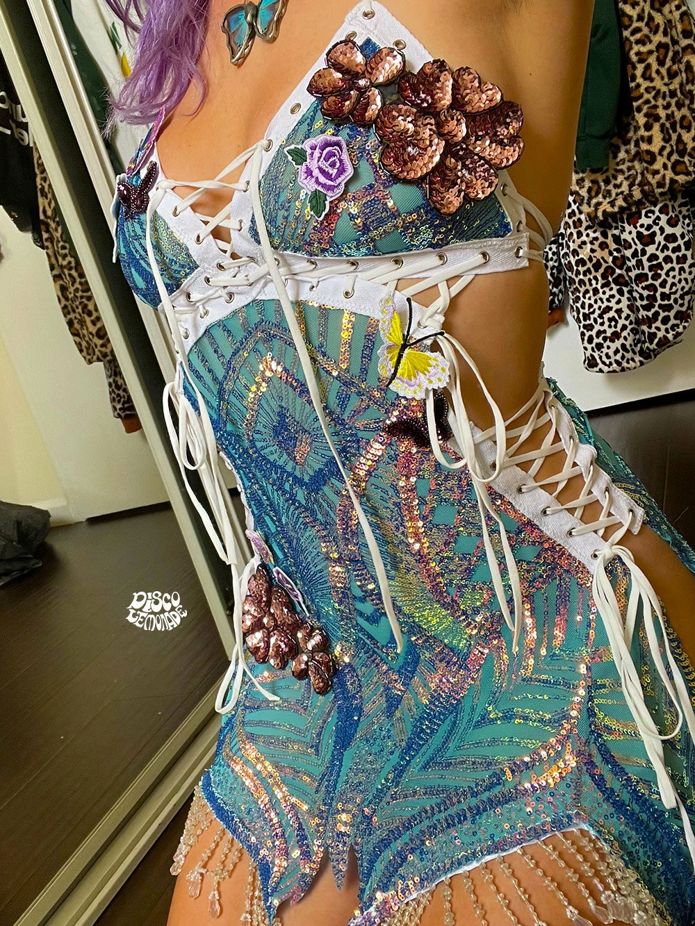 One of a kind Disco Dress with hand beaded embellishments and butterflies.
