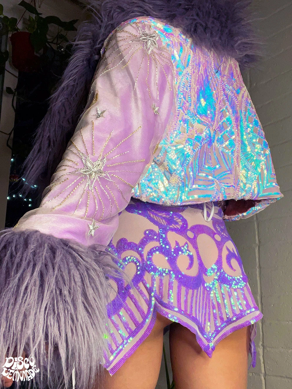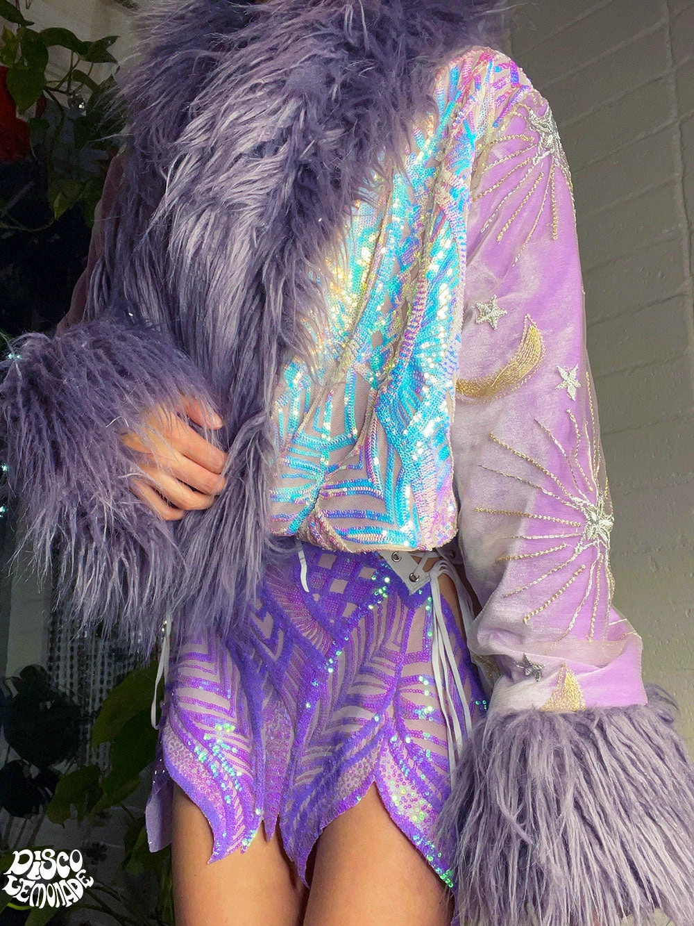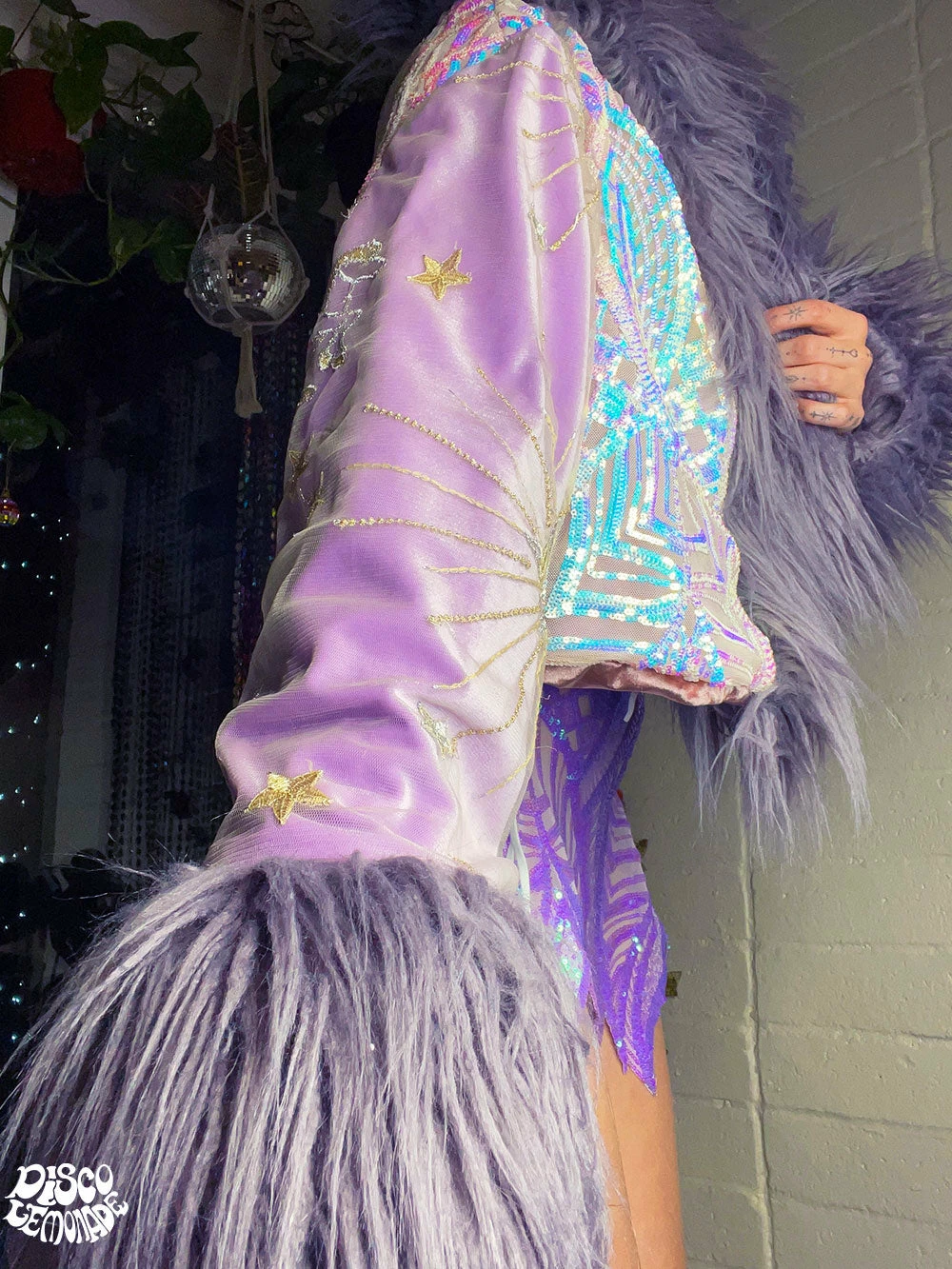 Celestial mesh in nude for the sleeves. DOUBLED LINED WITH VELVET.