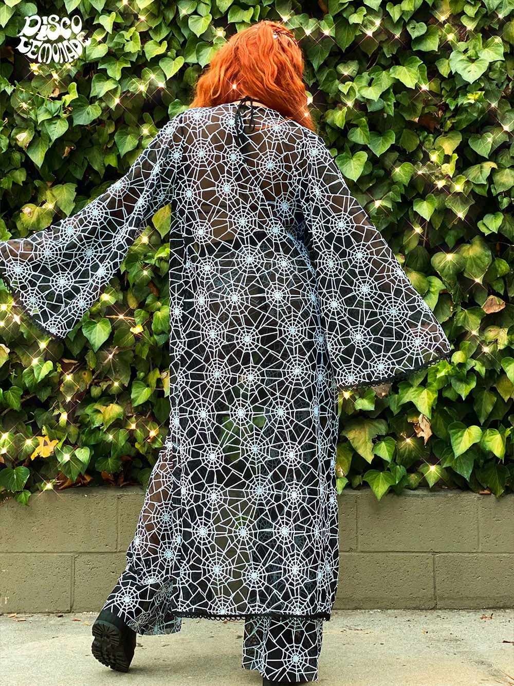 Our seductive spider floor length duster is a MUST to layer over any cute Disco Lemonade dress, bells or cardigan to spice up your outfit.