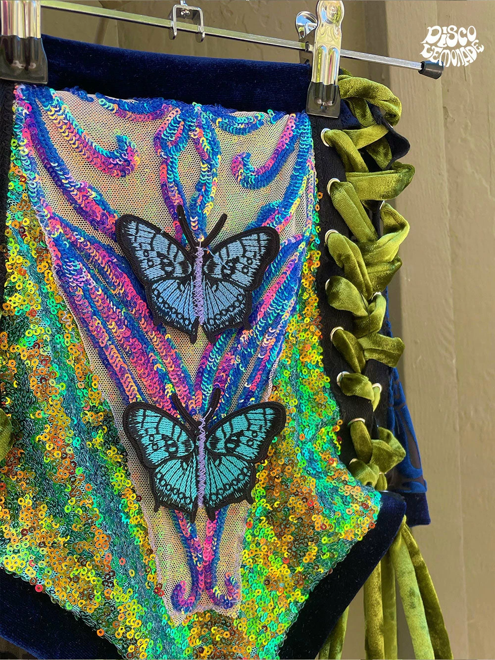 Velvet straps to lace up along the sides of the shorts.
