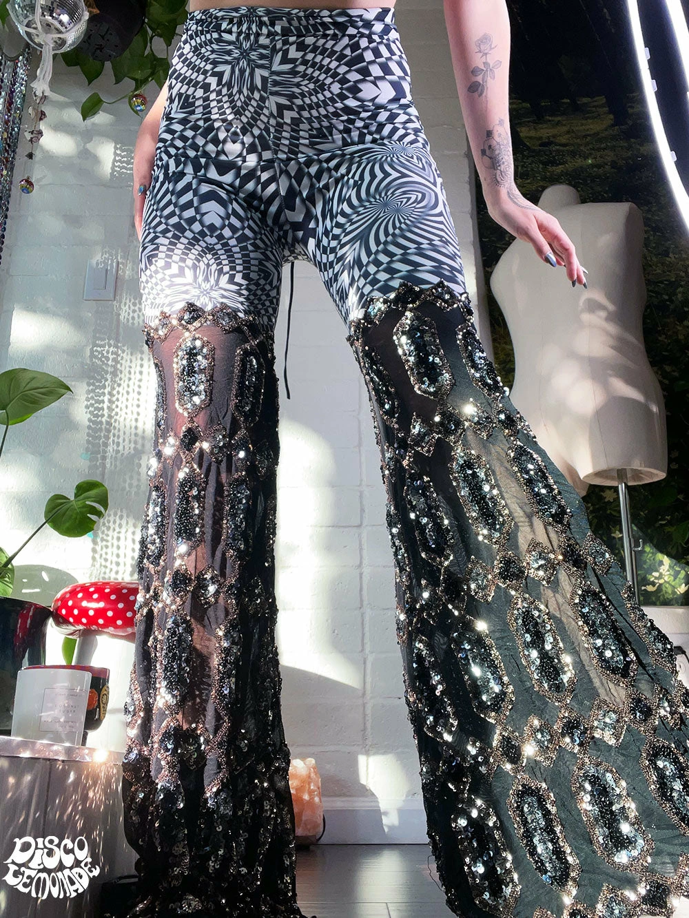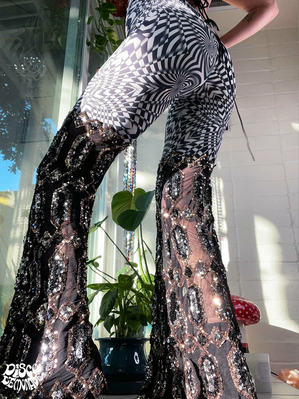 Psychedelic spandex with sequin on 4 way stretch mesh.