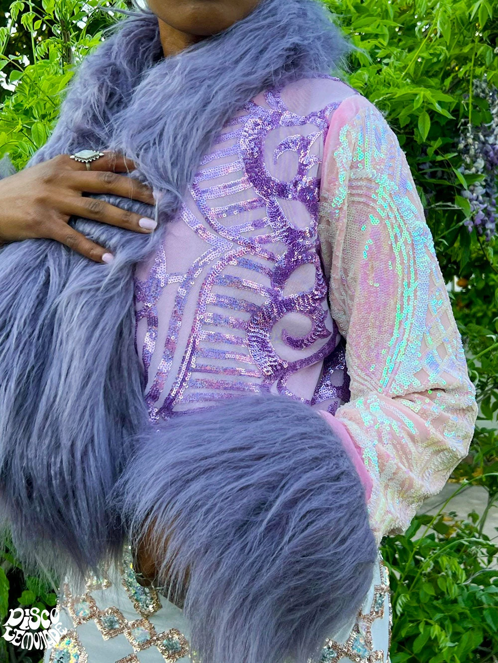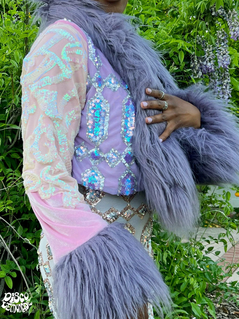 Astral pixie, blush & vanishing fae sequin cropped coat.