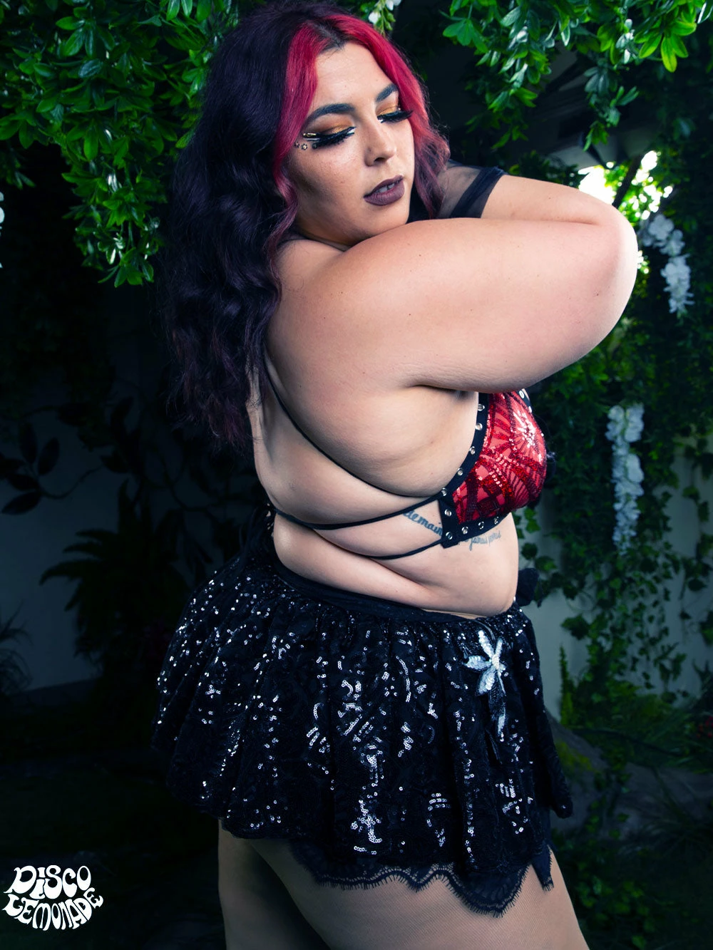 The cutest pixie bustle set that ever was. This set comes with red lace up disco top, lace up shorts and bustle. **gloves not included**