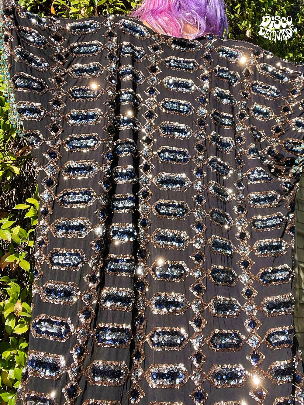 The ultimate layering piece that is as effortless as it is extra. This robe is trimmed with sturdy, high-quality beading for an extra layer of sparkle. It is also completely lined with high quality helenca fabric so there are absolutely no sequin scratchies!