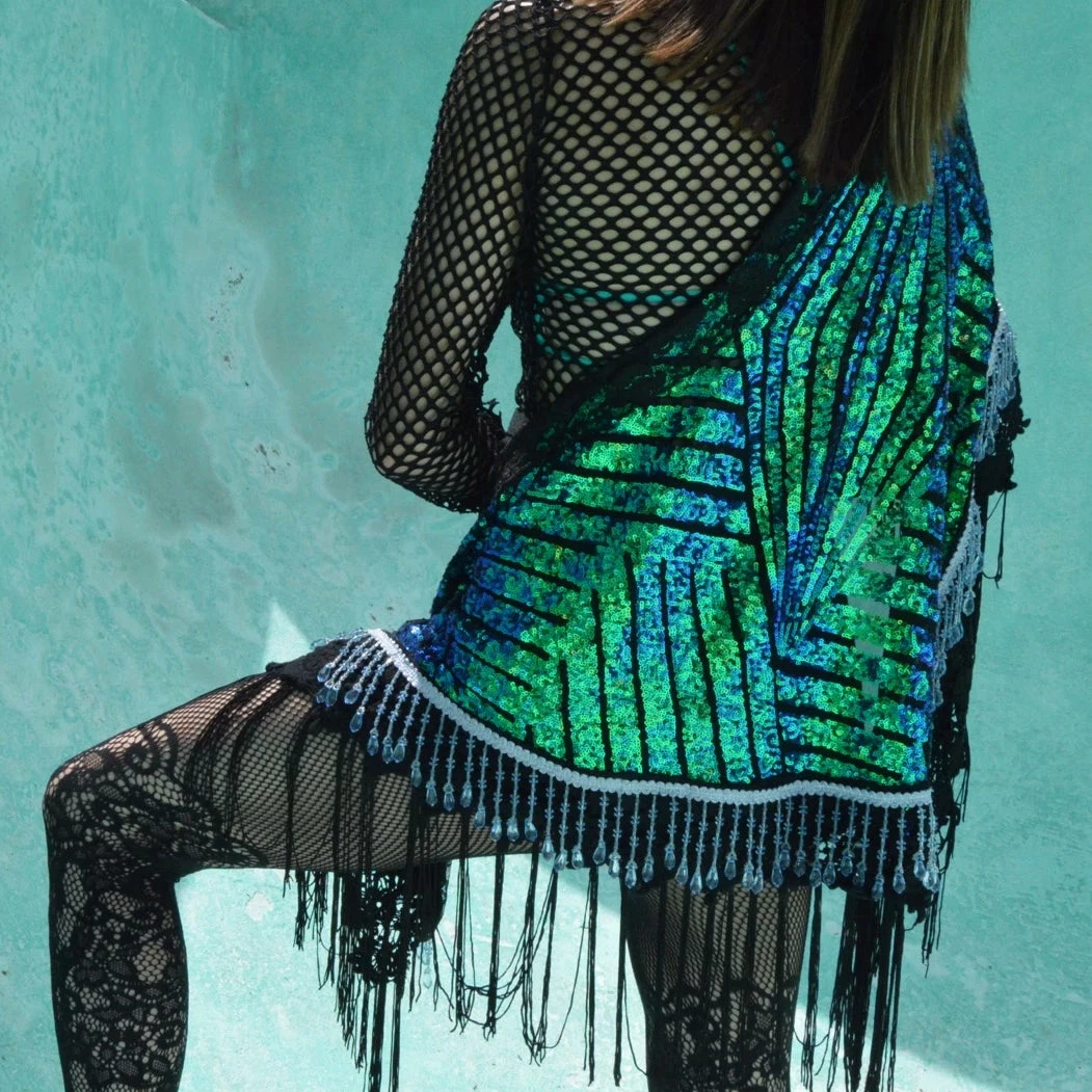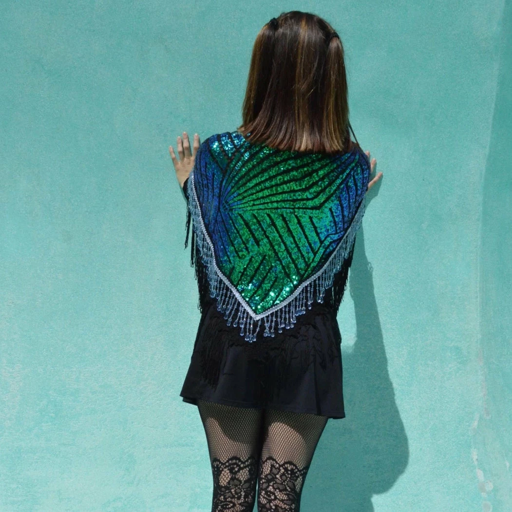 Blue, green geometric sequin patternZ with baby blue crystal beading ~