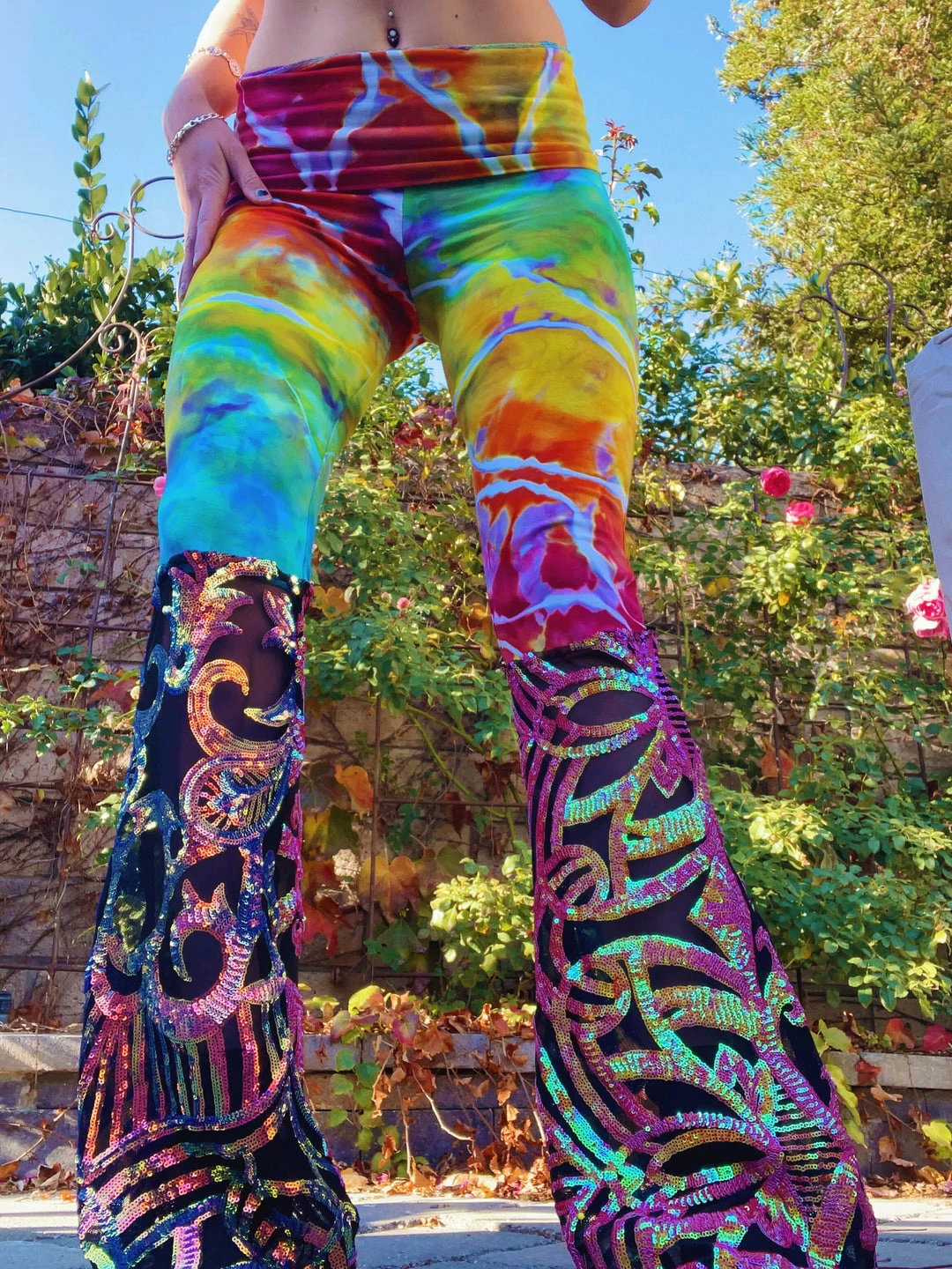 PSYdye {IG} & Disco Lemonade have teamed up to fulfill your rainbow DREAMS. A collection of rainbow bells from psychedelic heaven! 100% handmade bells hand dyed with sequin bell bottoms for the perfect combination of trippy, sparkly rainbow deliciousness!