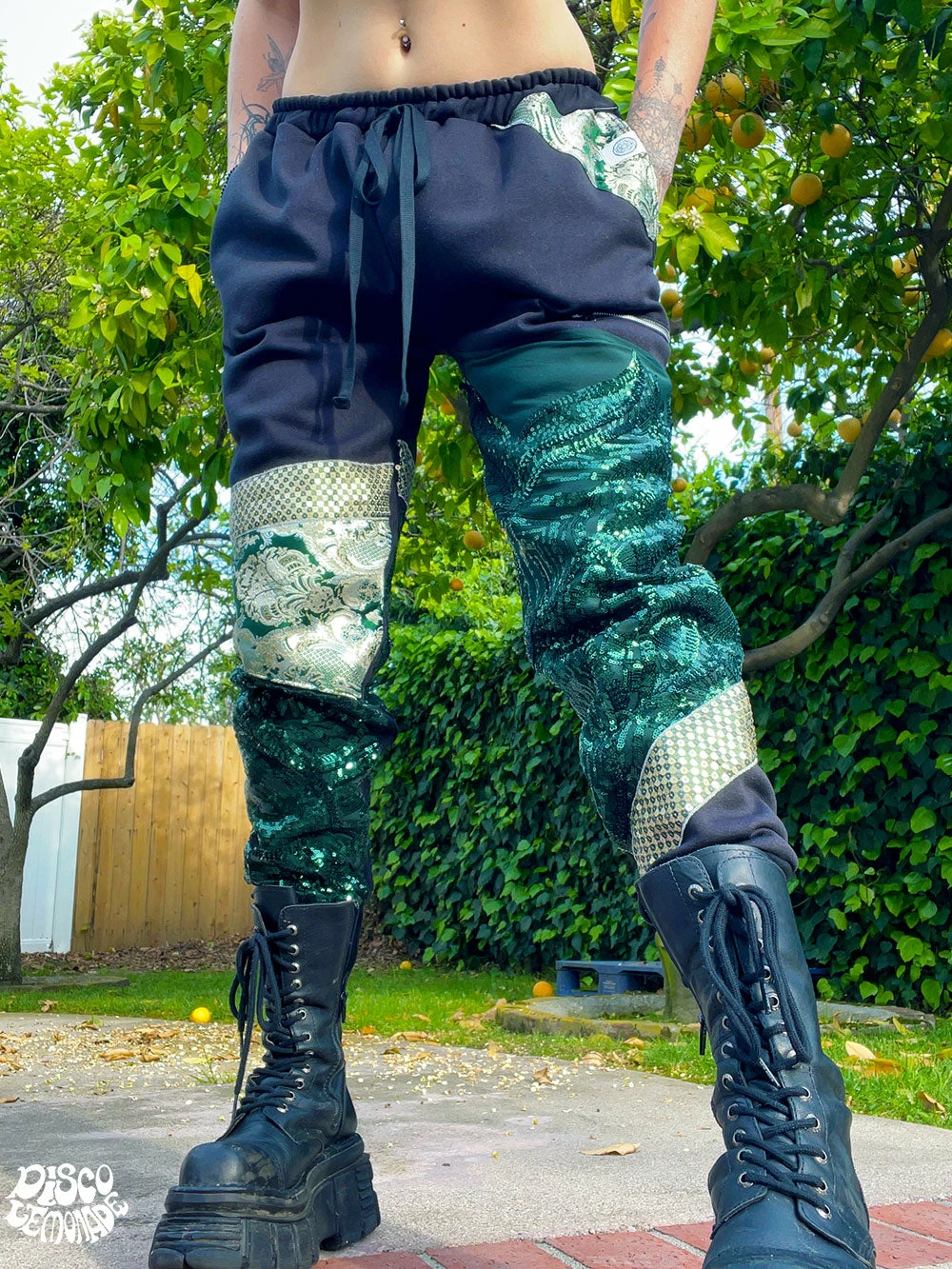 Comfy joggers with sequin & brocade detailing.