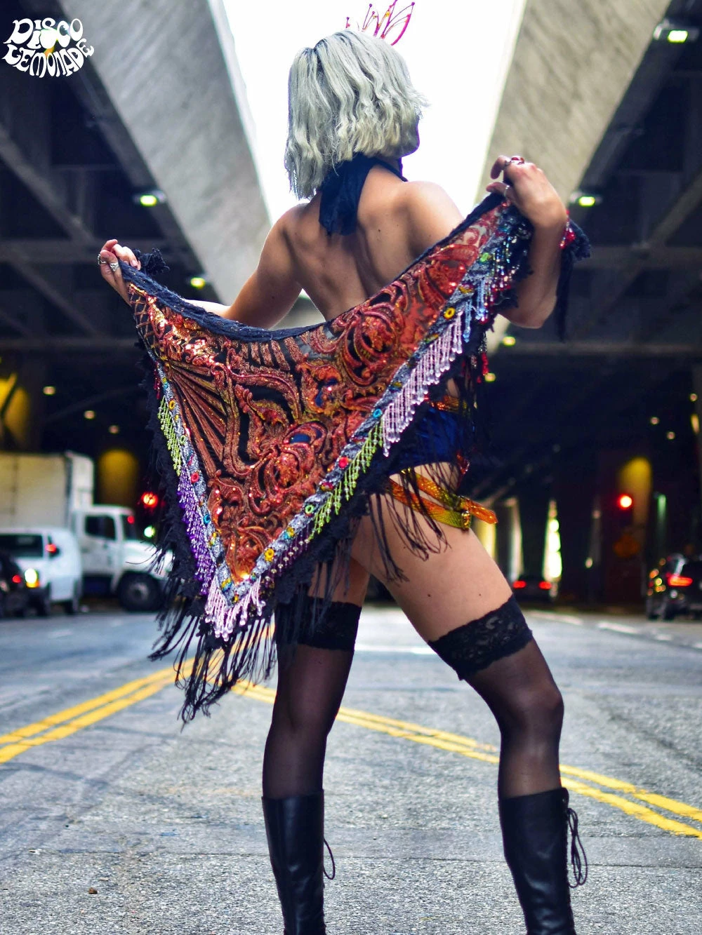 All Goddess Shawls are hand-made, sewn to order. Each shawl varies slightly in size, color & trim ~ it is my goal to make every piece unique & special to each customer ~ If you have any requests please feel free to email me once the order is placed 🙂